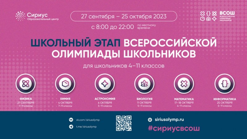 Требования к проведению школьного этапа всероссийской олимпиады школьников 2023/2024 учебного года https://siriusolymp.ru/rules